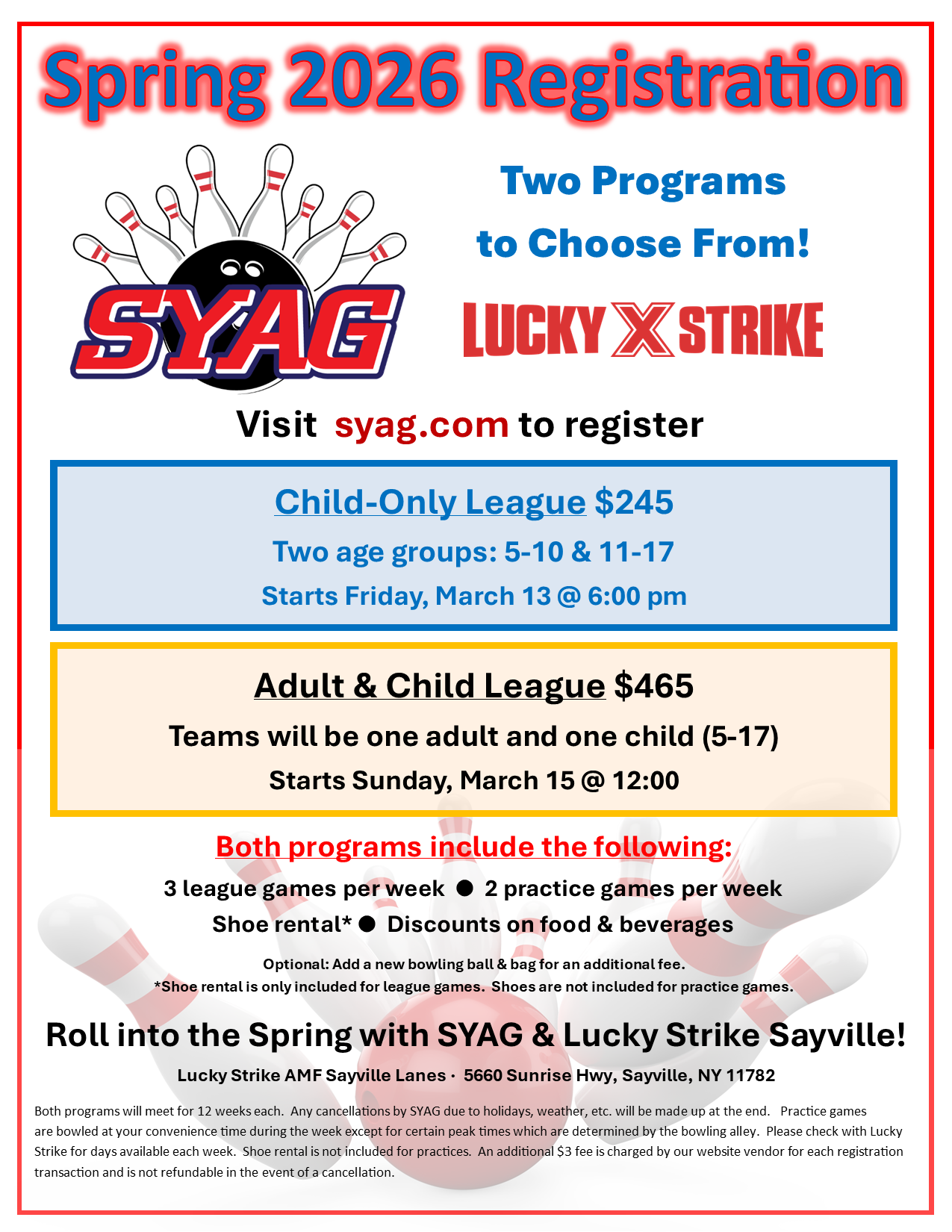 We are now registering for our Spring 2026 bowling programs. We offer two different programs: